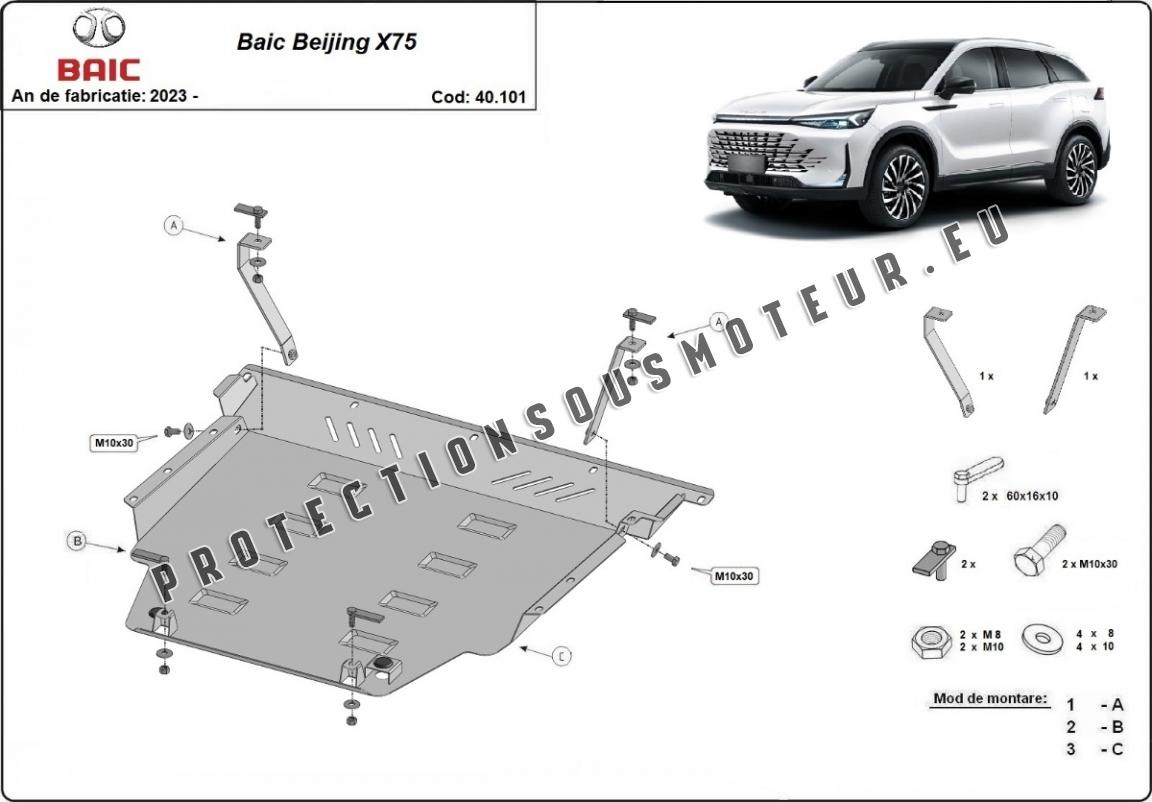 Aluminium cache sous moteur et de la boîte de vitesse BAIC Beijing X75 (2023-2025)