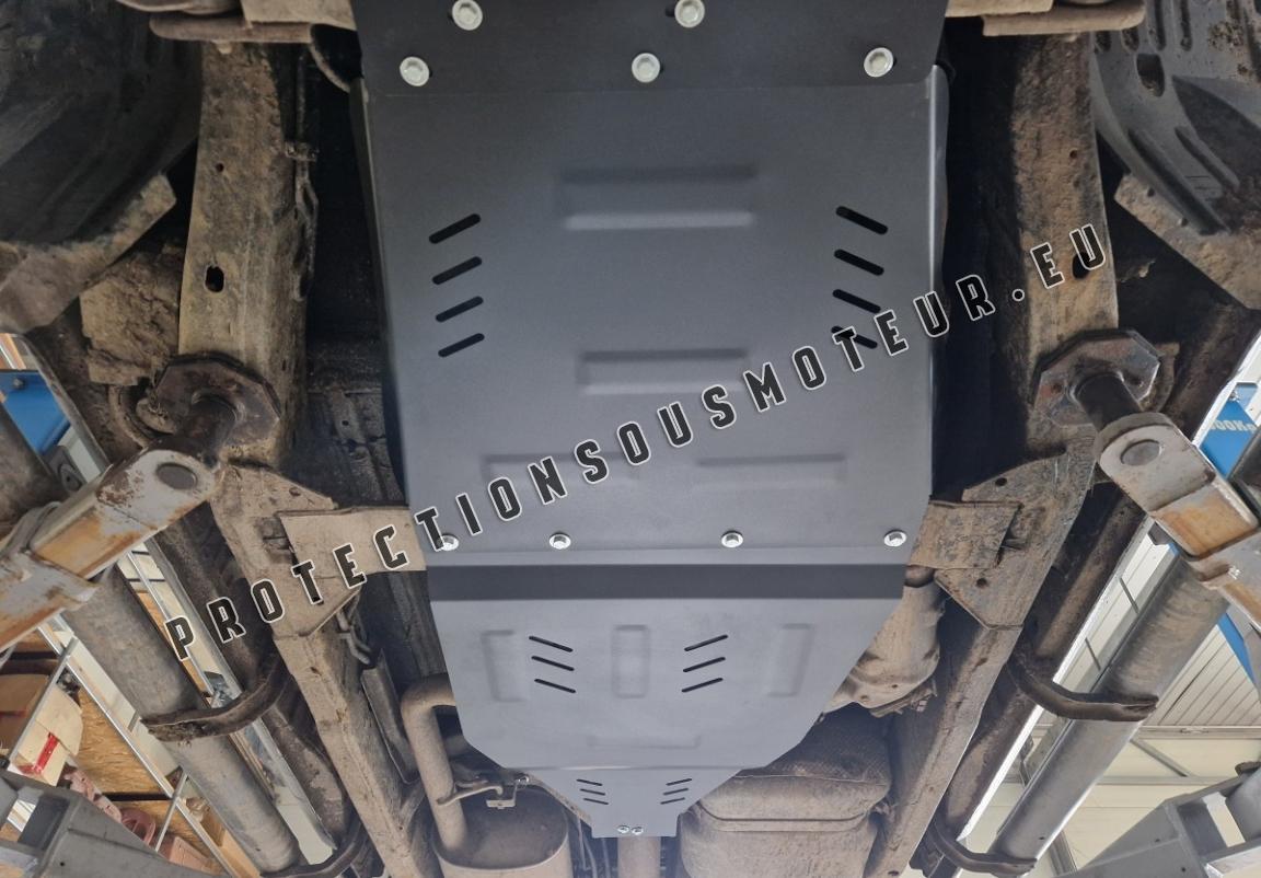 Le cache métallique protège: la boîte de vitesses, boite de transfert Le cache de protection est réalisé en Aluminium avec une épaisseur de 4 mm. Les boucliers sont en aluminium, mais les supports de fixation sont en acier. Vis, écrous, pinces, tous les accessoires de fixation sont inclus. Toutes les plaques de protection sont revêtues de poudre pour prévenir la corrosion. L'extérieur de la plaque de protection est doté de renforts en Aluminium, ce qui augmente la résistance aux chocs. |