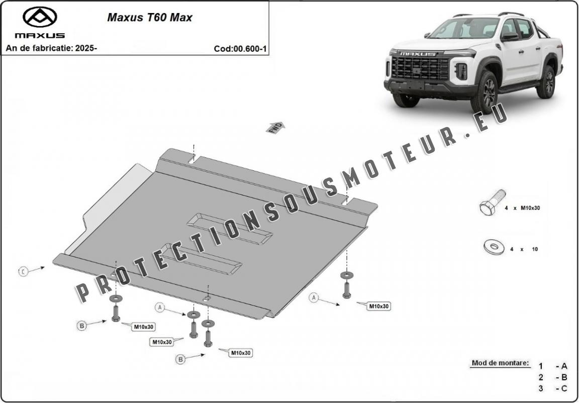 Cache de protection de la boîte de vitesse Maxus T60 Max (2025-2025)