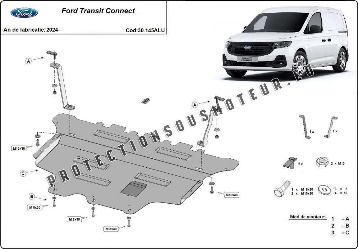 Cache sous moteur et de la boîte de vitesse Ford Transit Connect - Aluminium (2024-2025)