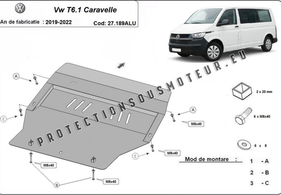 Cache sous moteur et de la boîte de vitesse Volkswagen Transporter T6.1 Caravelle - Aluminium (2019-2022)